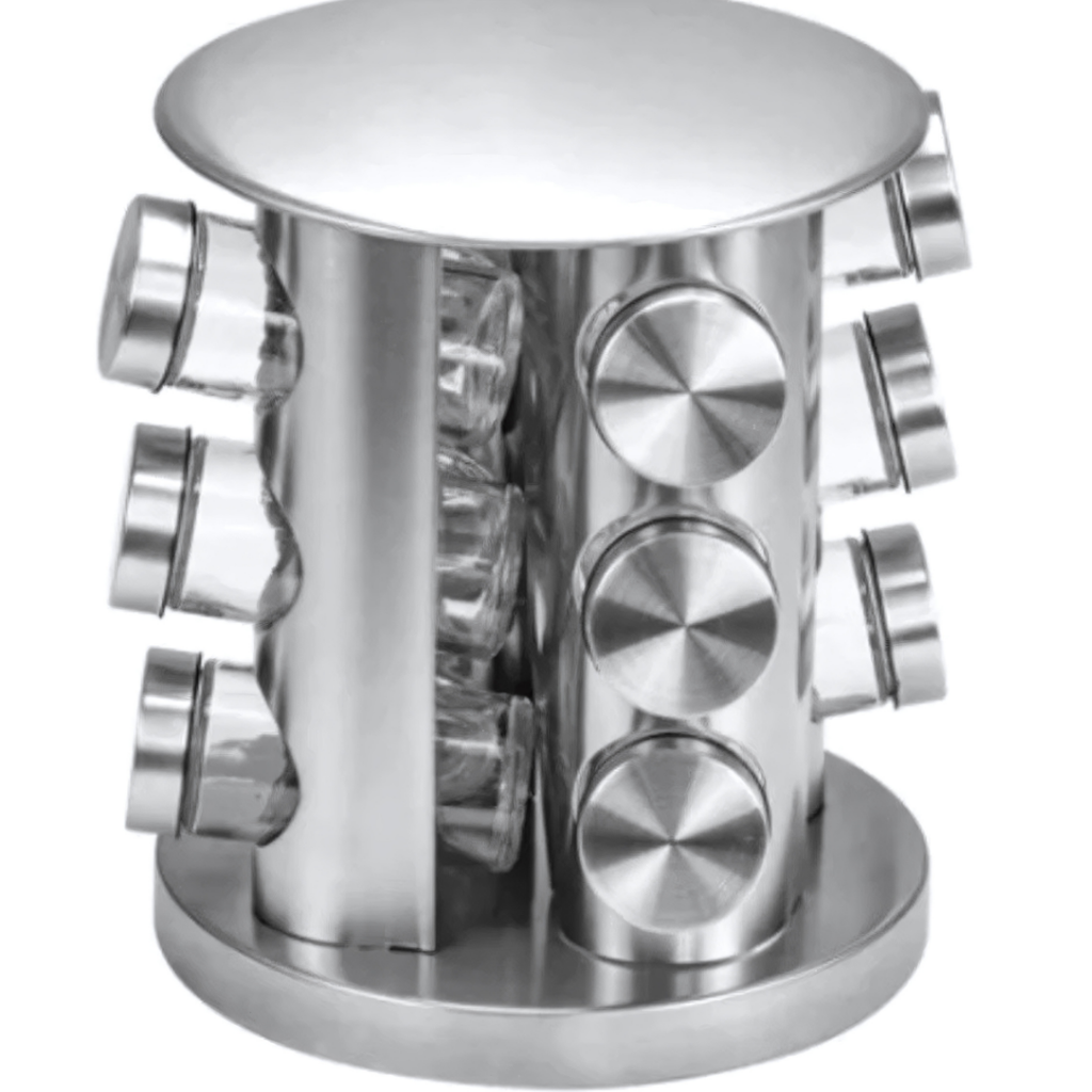 Com 12 potes e base giratória, você encontra tudo fácil.